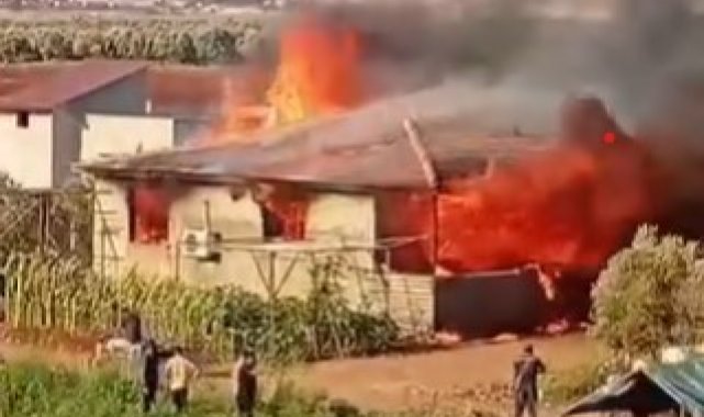Hatay'da alevlere teslim olarak yanan müstakil ev kullanılmaz hale geldi.