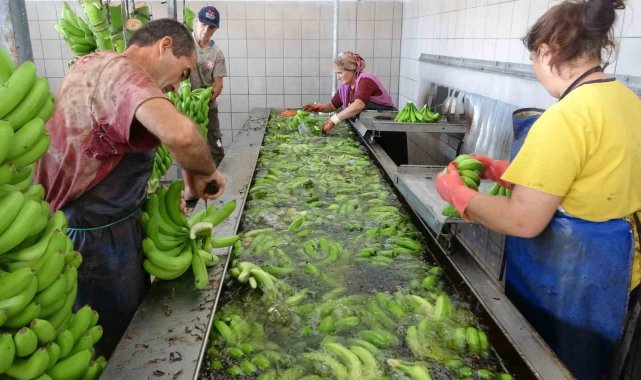 Türkiye'nin muz üretiminde merkezi konumunda olan ve ülke genelinde talebin yüzde 50'sini karşılayan Mersin'de hasat sezonu başladı. Bahçede 27-30 TL bandında alıcı bulan muz üretim yoğunluğu nedeniyle ürünün başkenti olarak anılan Anamur ilçesi başta olmak üzere Mersin ve ülke ekonomisine önemli bir katkı sunuyor.Mersin'in Anamur ilçesinde bölgenin başlıca geçim kaynağı olan coğrafi tescilli 'Anamur muzu' yılın 12 ayı boyunca hem örtü altı hem de açık alanda yetiştirilerek ülke genelinde ekonomiye önemli katkı sunuyor. Ülke genelinde üretilen 950 bin ton muzdan, yaklaşık 500 bin tonu Mersin'de 70 bin dekar alanda hasat ediliyor. Türkiye genelinde tüketilen her iki muzdan birinin yetiştiği kentte, en çok üretim ise Anamur ilçesinde gerçekleştiriliyor. İlçede hemen hemen her ailenin geçim kaynağı olan muz 37 bin dekar alanda yetiştirilerek bölgeye 4,5 milyar TL'lik gelir elde edilmesi sağlanıyor. Ekim ayında başlayan yoğun hasat dönemi Mart ortasına kadar sürüyor. Ülkede tüketilen muz ihtiyacını karşılayan Anamur sayesinde ithalatında önüne geçiliyor. Örtü altı ve açıkta bin bir emekle doğal olarak yetiştirilen muzlar önce hevenk şekliyle kesilerek işleme tesisine gönderiliyor. Burada askıya alınan muzlar tartılarak taraklara bölünüp sudan geçirilerek kasalara alınıp sarartma odalarına konuluyor. Bir hafta ile 10 gün arasında sarartma odalarında bekletilen muzlar tırlarla İstanbul, Ankara, Bursa, İzmir, Konya, Kocaeli, Diyarbakır, Şanlıurfa, Gaziantep ve Van başta olmak üzere ülke genelinde hemen hemen her şehre gönderiliyor. Mersin Valisi Ali Hamza Pehlivan da yeni sezonun hasadına katılarak işçilerle muz kesimi yaptı.Bu sezonun hasat döneminin başladığını belirten işçiler, kesimden paketlemeye kadar emek verilerek özenli bir şekilde muzları tüketiciye gönderdiklerini söyledi."Anamur muzun başkenti"Mersin'in 10 ürünün üretiminde ülke genelinde ilk sırada yer aldığını belirten Vali Ali Hamza Pehlivan, "Mersin muzda Türkiye'de üretilen ürünler içerisinde birinci sırada. Anamur ilçesi de Türkiye'de muzun başkenti. Son yıllarda üretimi her geçen gün artan bir ürün. Geçmişte ithal edilen teşvikler ve üreticilerimizin gayreti, yatırımları sayesinde artık neredeyse ihracat yapar hale gelmiş durumdayız. İthal ikame noktasına gelmiş durumdayız" dedi.Üretimle ilgili de bilgi veren Pehlivan, "Ülkemizde yaklaşık 950 bin ton muz üretiliyor. Bu üretimin yüzde 50'si Mersin'imizde üretiliyor. Mersin'imizde üretilen muzun da yüzde 50'sinden fazlası Anamur ilçemizde üretiliyor. Muz hasadı Ekim ayında başlıyor, Mart ayına kadar devam ediyor, süreklilik arz ediyor. Tabi ilimizin iklim ve toprak yapısı bu ürünlerin yetişmesine ziyadesiyle müsait" ifadelerini kullandı.Anamur'da muzun ekonomiye getirisi 4,5 milyar TLAnamur ilçesinde 37 bin dekar alanda muz üretimi yapıldığına dikkat çeken Pehlivan, "Yaklaşık 4,5 milyar TL'lik bir hasılat elde ediliyor. Buradaki ürünler yeşilken toplanıyor, belirli bir işlemden geçiyor ve yurdumuzun her noktasına dağılıyor. Anamur muzunun tadı, aroması, kabuk yapısı gibi özellikleriyle de ön plana çıkıyor. Bu yönüyle de coğrafi tescilli bir ürünümüz. Bu nedenle de simge ürünlerimizden biridir" diyerek sözlerini tamamladı.