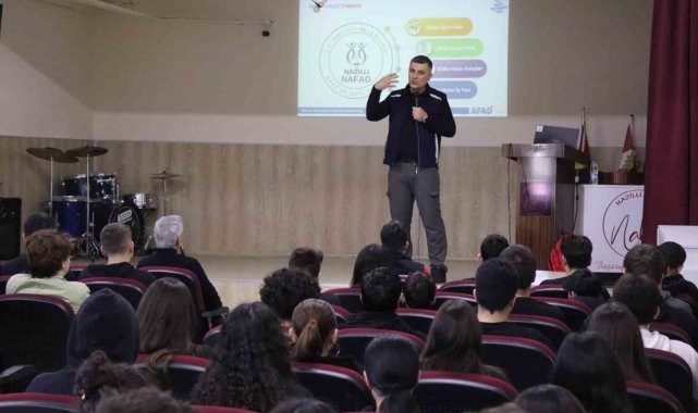 Nazilli Belediyesi Afet ve Acil Durum Birimi(NAFAD), Deprem Haftası kapsamında ilçedeki okullarda öğrencilere yönelik afet farkındalık eğitimleri gerçekleştirdi.