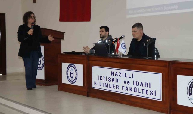 Nazilli Belediyesi Afet ve Acil Durum Birimi(NAFAD), Deprem Haftası kapsamında ilçedeki okullarda öğrencilere yönelik afet farkındalık eğitimleri gerçekleştirdi.Eğitimlerde deprem öncesinde alınması gereken önlemler, deprem anında yapılması gereken doğru davranışlar ve deprem sonrasında izlenecek güvenli adımlar detaylı şekilde anlatıldı. Eğitim programı çerçevesinde öğrencilerle bir araya gelen NAFAD ekipleri, afet bilincinin küçük yaşlarda kazanılmasının önemine dikkat çekti. Sunumlar ve uygulamalı anlatımlarla desteklenen eğitimlerde, öğrencilerin deprem anında panik yapmadan doğru hareket etmeleri için bilinçlendirme çalışmaları yapıldı.Deprem Haftası etkinlikleri kapsamında eğitimler; Nazilli Anadolu Lisesi, Aydın Adnan Menderes Üniversitesi İktisadi ve İdari Bilimler Fakültesi, Recepbey İlköğretim Okulu ve Amerikan Kültür Koleji öğrencilerine verildi. Afetlere karşı hazırlıklı bir toplum oluşturmanın eğitimle mümkün olduğunu vurgulayarak benzer bilgilendirme çalışmalarının farklı okullarda da devam edeceğini ifade eden NAFAD ekipleri, deprem başta olmak üzere tüm afetlere karşı bilinçli bireyler yetiştirilmesinin, muhtemel risklerin azaltılmasında önemli rol oynadığı belirtti.