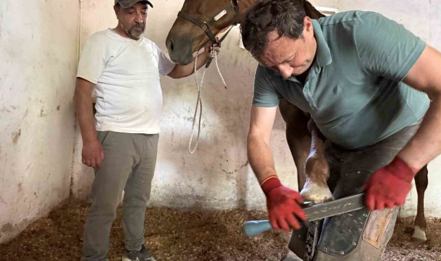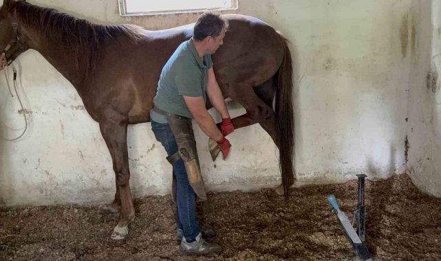 Düzce'de zorluğu kadar inceliği de olan nalbantlığı yaşatmaya çalışan Mesut Akın, mesleğe ilginin az olduğunu ancak yeni açılan kurslarla bu durumun değişebileceğini belirtti.Türkiye Jokey Kulübü'nde uzun yıllar görev yaptıktan sonra serbest olarak mesleğini sürdüren nalbant Mesut Akın (53), Düzce'de faaliyet gösteren bir at çiftliğine gelerek atların tırnak bakımlarını yapıyor. 16 yaşından bu yana nalbantlık yapan Akın, mesleğin zorluklarını anlatarak, yeni ustaların yetişmesi gerektiğine dikkat çekti. Akın, "Her mesleğin bir zorluğu vardır ama nalbantlığın hem kendine ait sorumlulukları hem de fiziksel zorlukları mevcut. Özellikle yetişmekte olan tayların ve yarışlara hazırlanan atların bakımı daha dikkatli ve düzenli yapılmalı. Normal bakım süreçlerinde küçük taylar, kısraklar, damızlıklar ve aygırların genel bakımları ayda bir veya mevsimsel olarak değişen periyotlarla yapılır" dedi.Sıcak havanın işini zorlaştırdığını ifade eden Akın, "Mesleğin en zor kısmı sıcak alanlar. Bununla birlikte hayvanların bulunduğu ortamlarda sinek ve benzeri durumlar ortaya çıkıyor. Ayrıca hayvanlar karakterleri veya eğitimleri açısından agresif olabiliyorlar. Bunlar bizim mesleğin cilveleri ama yine de güzel bir meslek" diye konuştu.Jokey Kulübü'nün son yıllarda başlattığı eğitim kurslarıyla mesleğe yeni isimlerin kazandırılmasının hedeflendiğini belirten Mesut Akın, "Jokey Kulübü son 2 yıldır nalbant kursları düzenliyor. Bu kurslar Bursa Karacabey Harası'nda açılıyor. Yetişen öğrenciler var ama rakamlar şu aralar az. Nalbantlık mesleğini öğreten ve uygulamalı eğitim verilen bu programlardan şu ana kadar 9-10 öğrenci mezun oldu. Buralardan çıkacak öğrencilerin bizler gibi hizmet sunacaklarına inanıyorum" ifadelerini kullandı.
