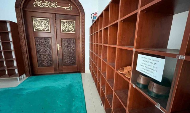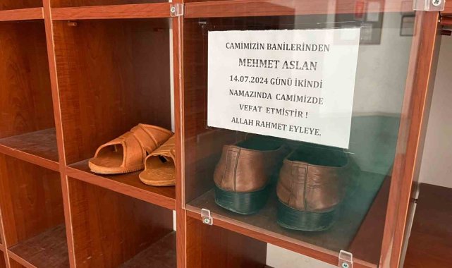 Aydın'ın İncirliova ilçesindeki Külliye Camii'nde namaz kılarken hayatını kaybeden hayırsever Mehmet Aslan'ın son giydiği ayakkabı, caminin ayakkabılığında muhafaza ediliyor.