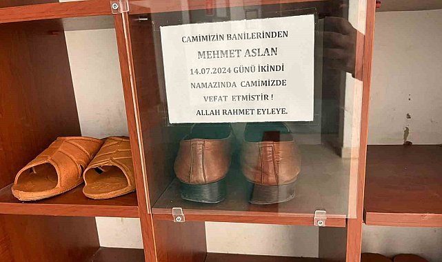 Aydın'ın İncirliova ilçesindeki Külliye Camii'nde namaz kılarken hayatını kaybeden hayırsever Mehmet Aslan'ın son giydiği ayakkabı, caminin ayakkabılığında muhafaza ediliyor.İncirliova'nın Cumhuriyet Mahallesi'nde bulunan Külliye Camii'nin ayakkabılığında koruma altında olan bir ayakkabı camiye gidenlerin dikkatini çekiyor. Cami, İncirliova Camii ve Külliye Yapma ve Yaşatma Derneği öncülüğünde yapıldı. Caminin yapımında büyük emekleri bulunan dernek yöneticisi Mehmet Aslan, 14 Temmuz 2024 tarihinde ikindi namazında hayatını kaybetti. Camide hayatını kaybeden Aslan'ın giydiği son ayakkabı ise caminin ayakkabılığında muhafaza altına alındı. Caminin yapımında büyük emekleri bulunan hayırsever Aslan'a vefa örneği gösterildi.Ayakkabının muhafaza altına alındığı ayakkabılığa, "Camimizin banilerinden Mehmet Aslan 14.07.2024 günü ikindi namazında camimizde vefat etmiştir. Allah rahmet eyleye" notu yazıldı.Camide namaz kılmaya gidenler ayakkabıyı görünce önce şaşırırken, konuyu öğrenince yetkilileri tebrik ediyor.