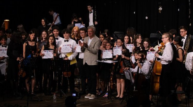 Narlıdere Belediyesi’nin çocukları sanatı sevdirmek ve dünya çapında sanatçıları ülkemize kazandırmak için hayata geçirdiği Çocuk Senfoni Orkestrası, 2022-2023 eğitim-öğretim dönemi çalışmalarını ‘Yaza Merhaba’ konseri ile taçlandırdı.İZMİR (İGFA) - Narlıdere Belediyesi Çocuk Senfoni Orkestrası, 2022-2023 eğitim-öğretim dönemi çalışmalarını muhteşem bir konserle taçlandırdı.Şefliğini Anıl Altınsoy’un üstlendiği ‘Yaza Merhaba’ konserinde yaklaşık 2 saat sahnede kalan çocuklar, Klasik Batı Müziği eserlerinin yanı sıra, film ve dizi müziklerini başarıyla seslendirdi. Narlıdere Belediyesi Atatürk Kültür Merkezi’nde boş koltuğun kalmadığı ve büyük bir coşkunun yaşandığı gecede sanatseverler, müziğin genç yeteneklerini uzun süre ayakta alkışladı. Narlıdere Belediye Başkanı Ali Engin, CHP İzmir İl Başkan Yardımcısı İnanç Nurlu, CHP Narlıdere İlçe Başkanı Mesut Durgun ve davetlilerin katıldığı gece sanatseverlere muhteşem bir gece yaşattı.
