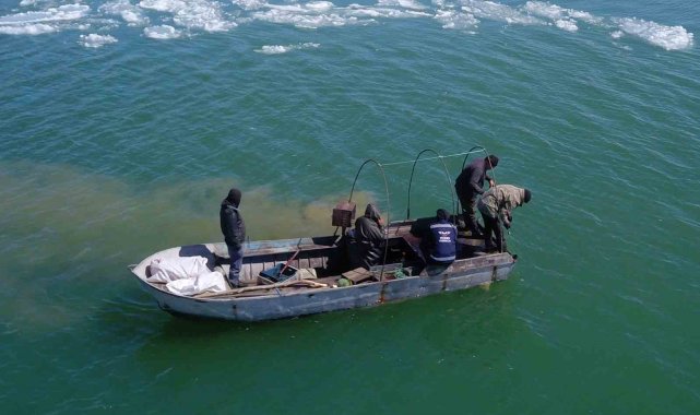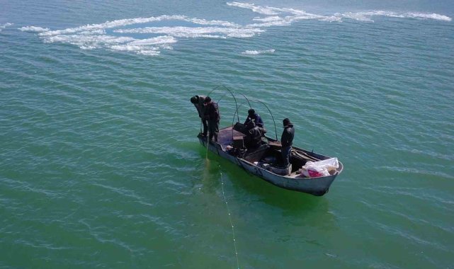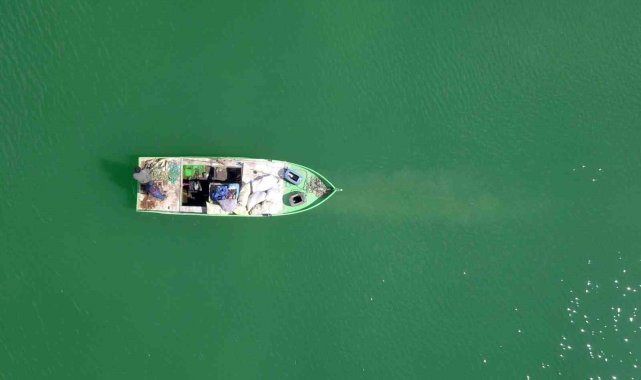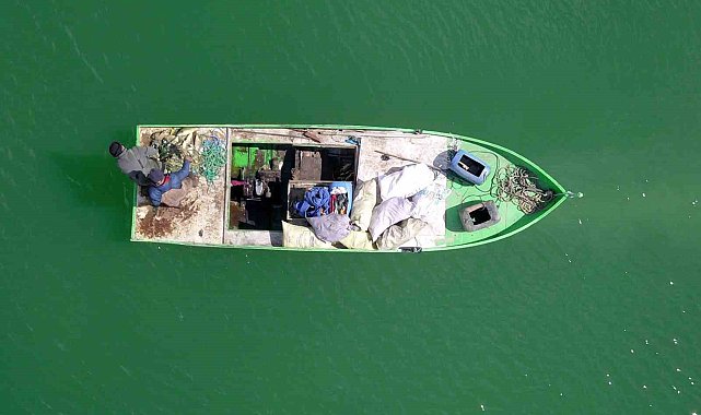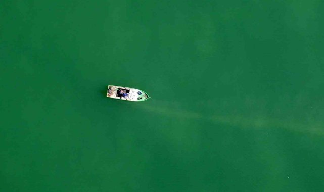 Nazik Gölü'nde balıkçı tekneleri havadan görüntülendi