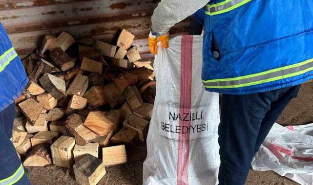 Nazilli Belediyesi, Park ve Bahçeler Müdürlüğü şantiyesinde yakacak haline getirilen odunlar ile ihtiyaç sahiplerinin yuvasını ısıtıyor.