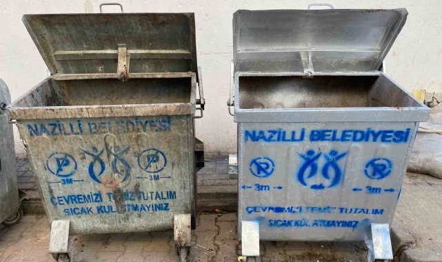 Nazilli Belediyesi, başlattığı temizlik seferberliği kapsamında ilçe genelindeki çöp konteynerlerini bakıma aldı.