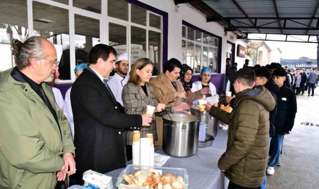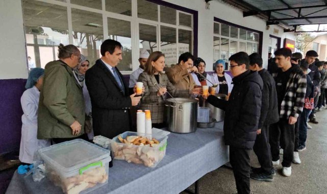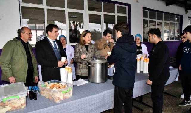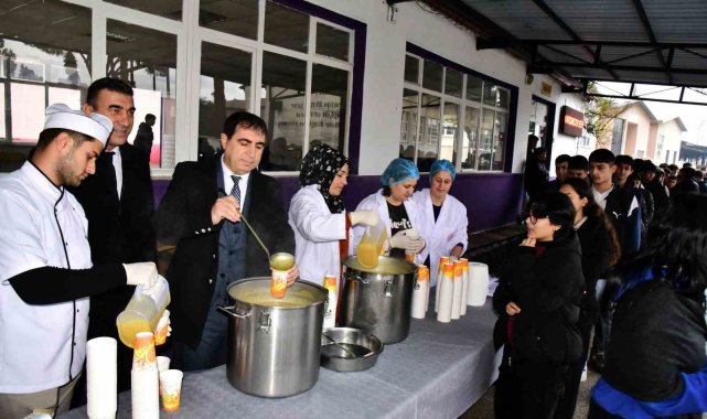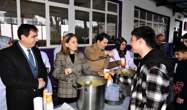 Aydın'ın Nazilli ilçesinin en eski okulları arasında yer alan Nazilli Mesleki ve Teknik Anadolu Lisesi 'sağlıklı besleniyorum' projesine Kaymakam Kan'dan tam not.Nazilli Mesleki ve Teknik Anadolu Lisesi(NAMTAL) Türkiye genelinde ilk kez uygulanan 'sağlıklı besleniyorum' projesi kapsamında gerçekleştirdiği sabah çorbası etkinliğine katılan Nazilli Kaymakamı Huriye Küpeli Kan ve beraberindeki protokol üyeleri öğrencilere sabah çorbası ikramında bulundu. Öğrencileri için el ele vererek aralarında topladıkları yardımlarla öğrencilere sabahları çorba ikramında bulunmaya başlayan öğretmenlerin ardından hayırseverlerin de katıldığı proje büyük ilgi gördü. İlçenin merkez ve kırsal mahallelerinden meslek öğrenmek için okula gelen binden fazla öğrenci için soğuk kış aylarında sıcacık çorba içtikten sonra derslerine başlamalarını sağlayan öğretmenlerin bu davranışına kayıtsız kalmayan İlçe Kaymakamı Huriye Küpeli Kan, öğrencilere çorba dağıttı."Kalpleri de ısıtan proje"Projeyi çok anlamlı bulduğunu ifade eden Kaymakam Kan: "Cumhuriyet Başsavcımız Murat Dilsiz ve İlçe Milli Eğitim Müdürümüz İsmail Şimşek ile birlikte Nazilli Mesleki ve Teknik Anadolu Lisesi'nde düzenlenen 'sağlıklı besleniyorum' projesi için okulumuzu ziyaret ettik. Okul Müdürümüz Faruk Al, müdür yardımcıları, öğretmenler ve öğrenci velilerinin 2024-2025 Eğitim-Öğretim Yılı başında gönüllülük esasına dayalı şekilde hayata geçirdikleri sabah çorbası ikramı öğrencilerimiz açısından çok yararlı olmuş. Okul aile birliği üyeleri, hayırseverler ve öğretmenlerin nakdi yardımlarıyla da öğrencilere somun ekmekle birlikte sıcak çorba ikram ediliyor. Biz de etkinliğe katılarak öğrencilerimize çorba ikramında bulunduk. Geleceğimiz olan öğrencilerimizin soğuk kış aylarında sabahları derslerine aç girmemeleri çok önemli. Okulumuzda öğlenleri de sıcak yemek çıkartılıyor. İlçemizde örnek bir okulumuz olarak gurur duyduk. Emeği geçen herkese çok teşekkür ediyorum" dedi.