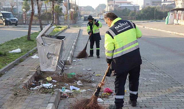 Nazilli Belediyesi ilçenin dört bir yanında temizlik çalışmalarına hız kesmeden devam ediyor. Son olarak Yeni Sanayi ve Yeşil Mahalle'de gerçekleştirilen kapsamlı temizlik çalışmasıyla sokaklar, parklar ve kaldırımlar temizlendi.Nazilli Belediyesi Temizlik İşleri Müdürlüğü ekipleri, Yeşil ve Yeni Sanayi Mahallesi'nde kapsamlı temizlik çalışması gerçekleştirdi. Düzenli temizlik çalışmalarından duydukları memnuniyeti dile getiren Yeşil Mahalle Muhtarı Şenol Öztürk ve Yeni Sanayi Mahalle Muhtarı Osman Yalın; çevre temizliğine herkesin katkı sağlaması gerektiğini vurgulayarak ekiplere teşekkür etti. Temizlik çalışmalarının rutin olarak sürdürüleceğini kaydeden Nazilli Belediye Başkanı Dr. Ertuğrul Tetik; "Halkımızın daha sağlıklı ve yaşanabilir bir çevrede olması için çalışmalarımızı kararlılıkla sürdürüyoruz. Temiz tutmak, temizlemekten daha önemlidir. Bu konuda vatandaşlarımızın da duyarlı olmasını bekliyoruz" sözlerini kaydetti.