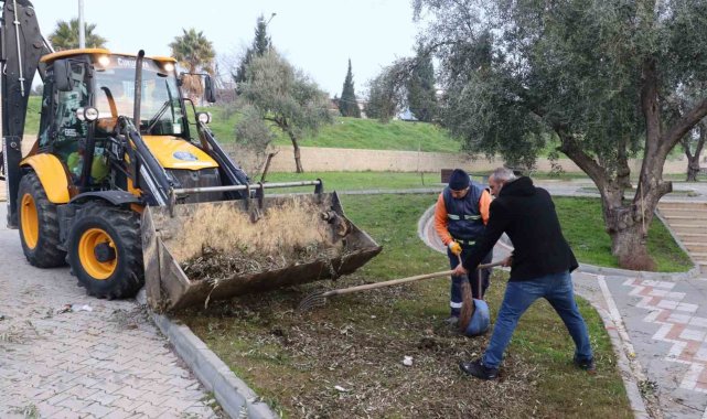 Nazilli'deki yeşil alanlarda temizlik ve bakım çalışması sürüyor