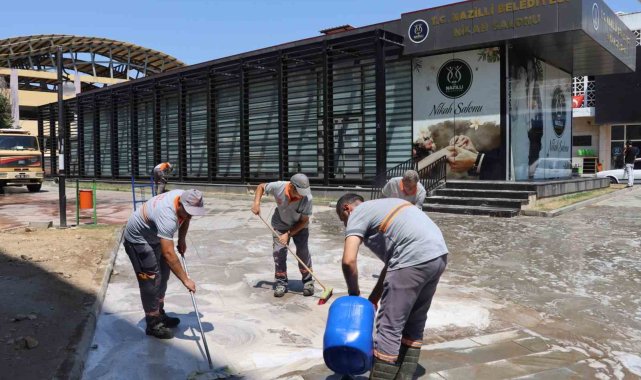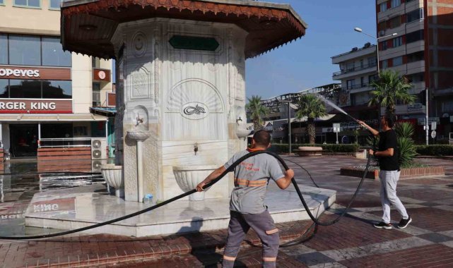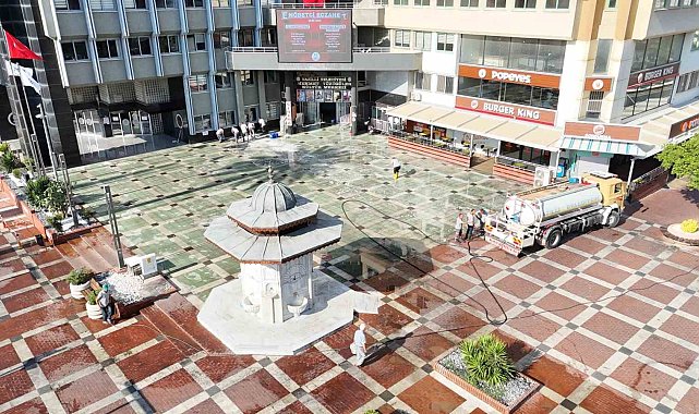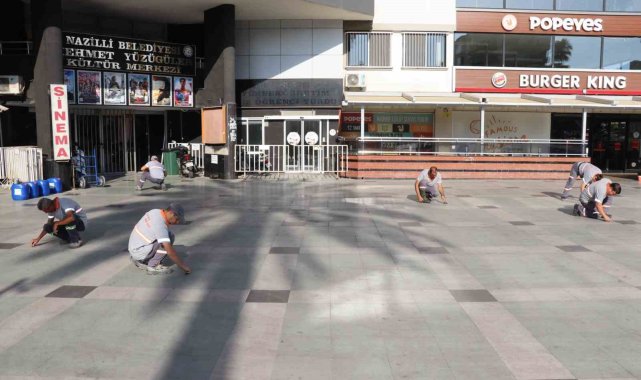 Nazilli Belediyesi Temizlik İşleri Müdürlüğü ekipleri, şehrin en işlek noktalarından biri olan Cumhuriyet Meydanı'nda köşe bucak temizlik yaptı.Sabah erken saatlerde çalışmalara başlayan ekipler, meydanda yer alan Osmanlı Çeşmesi'ni özel ilaçlarla temizleyerek eski kötü görüntüsünü yok etti. Uzun yıllardır kullanımı nedeniyle meydanda kalıcı hale gelen kirler ise temizlik spatulası ile tek tek kazındı. Deterjanla fırçalanan meydan ardından tazyikli su ile durulandı. Temizlik İşleri ekipleri tarafından eş zamanlı olarak Ahmet Şensan Kültür Merkezi doğusunda yer alan Belediye Nikah Salonu çevresinde de yabani ot temizliği, budama ve temizlik çalışması yapıldı.Nazilli'nin kalbi niteliğindeki meydanın genel görünümünün iyileştirilmesi ve hijyen standartlarının artırılması için söz konusu çalışmaların rutin olarak sürdürüleceğini kaydeden Nazilli Belediye Başkanı Dr. Ertuğrul Tetik, sıcak hava şartlarına rağmen gece gündüz demeden özveriyle çalışan tüm saha ekibineteşekküretti.