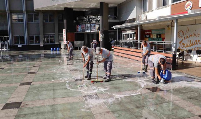 Nazilli Belediyesi Temizlik İşleri Müdürlüğü ekipleri, şehrin en işlek noktalarından biri olan Cumhuriyet Meydanı'nda köşe bucak temizlik yaptı.