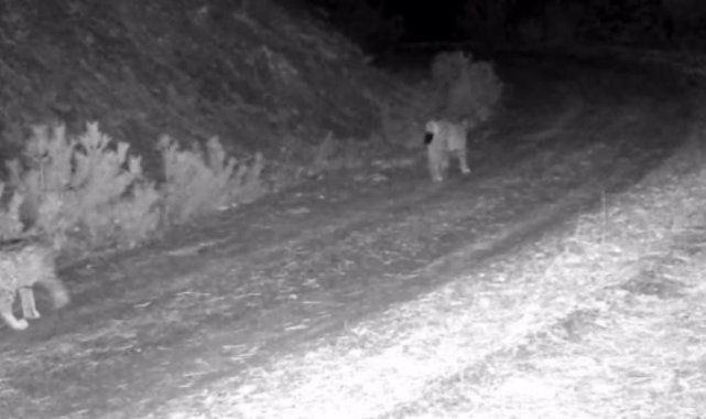 Çankırı'da fotokapan kameralarına takılan görüntülerde, nesli tehlike altındaki vaşak ve diğer yaban hayvanları doğal yaşamları içinde kaydedildi.