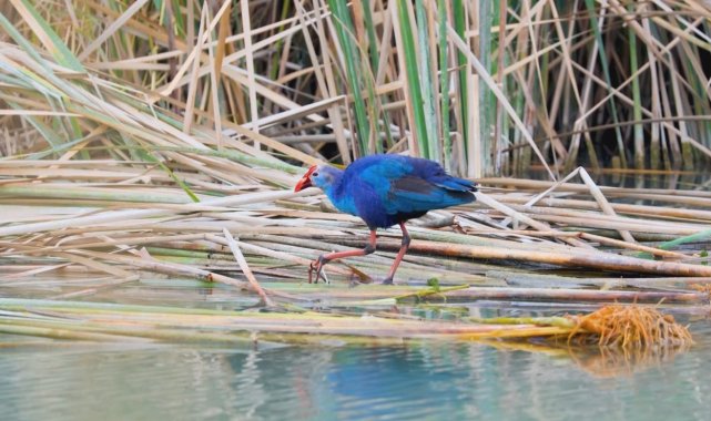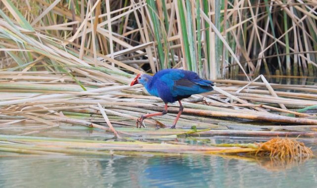 Türkiye'nin önemli sulak alanlarından Göksu Deltası'nda nesli tükenme tehlikesi altında bulunan ve koruma altındaki saz horozu görüntülendi.