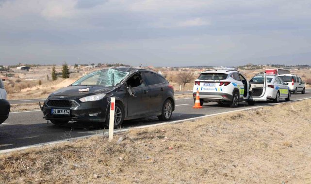 Nevşehir'de kontrolden çıkan otomobilin orta refüje düşerek savrulduğu kazada sürücü yaralandı.