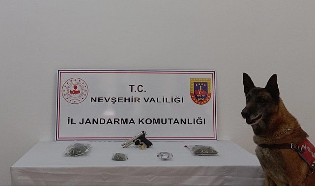 Nevşehir'de 1 şahsın ev ve eklentilerinde yapılan aramada 95 gram uyuşturucu madde ve 1 adet ruhsatsız tabanca ve 16 adet fişek ele geçirildi.