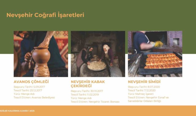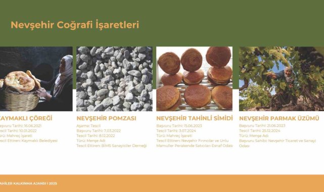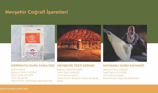 Nevşehir'in coğrafi işaretli ürün sayısının artırılması ve Avrupa Birliği'nden tescilli coğrafi işaretli ürünlere sahip olabilmesi amacıyla çalışma başlatıldı.Nevşehir Valisi Ali Fidan'ın talimatıyla kurulan ve koordinasyon görevi Ahiler Kalkınma Ajansı'na verilen Coğrafi İşaret İl Yürütme Kurulu Toplantısı; Ahiler Kalkınma Ajansı ev sahipliğinde gerçekleştirildi. Toplantıya Nevşehir Valiliği, Nevşehir Belediye Başkanlığı, Nevşehir Hacı Bektaş Veli Üniversitesi, Kapadokya Üniversitesi, Nevşehir İl Özel İdaresi, Nevşehir İl Tarım ve Orman Müdürlüğü, Nevşehir Ticaret İl Müdürlüğü, Nevşehir Ticaret ve Sanayi Odası, Nevşehir Ticaret Borsası, Nevşehir Esnaf ve Sanatkârlar Odaları Birliği, Kapadokya Yöresi Kadın Girişim, Üretim ve İşletme Kooperatifleri Birliği ile kurul temsilcileri katılım sağladı. Konuyla ilgili Ahiler Kalkınma Ajansı'ndan yapılan açıklama şu şekilde;"Coğrafi işaret, bir ürünün kaynağını, karakteristik özelliklerini ve bu özelliklerin coğrafi alanla olan bağlantısını garanti eden önemli bir kalite işaretidir. Coğrafi işaret tescili, ürünlerin gelenekselliğini, yerel özelliklerini ve ününü korurken, aynı zamanda üreticilere ekonomik fayda sağlayarak kırsal kalkınmayı destekler. Bu anlamda, Nevşehir'in coğrafi işaret potansiyeli toplantıda detaylı şekilde ele alındı. Nevşehir'de hâlihazırda 10 coğrafi işaret tescilli ürün bulunmaktadır. Avanos Çömleği, Derinkuyu Kuru Fasulyesi, Kaymaklı Kuru Kaymağı, Kaymaklı Çöreği, Nevşehir Kabak Çekirdeği, Nevşehir Pomzası, Nevşehir Simidi, Nevşehir Tahinli Simidi, Nevşehir Testi Kebabı, Nevşehir Parmak Üzümü. Bunların yanı sıra, Topaç Sarımsağı ve Nevşehir Üzüm Turşusu için coğrafi işaret başvuru süreci devam ederken, ilin zengin coğrafi işaret potansiyelini yansıtan birçok ürün daha bulunmaktadır. Bu ürünler bazıları şunlardır: Ayhan Patlıcanı, Nevşehir Emir Üzümü ve Dimrit Üzümü, Avanos Halısı ve Nevşehir Çulfa Dokuması, Nevşehir Taşı, Ürgüp Nahılı ve Nevş,ehir Köftürü, Nevşehir Pelveri, Süpürge Pekmezi ve Dolazı, Nevşehir Asidesi ve Bulamacı, Nevşehir Tarhana Tatlısı, Hacıbektaş Karaburna Üzümlemesi, Nevşehir Zerdali ve Köftür Kavurması, Nevşehir Asma Cacığı ve Kabak Gülü, Kalaba Yoğurdu, Nevşehir Tık Tık/Gıcı Mantı ve Nohutlu Mantı, Gendime ve Nevşehir Çömlekte Ağ Pakla, Nevşehir Ürgüp Köftesi, Nevşehir Kuzu Etli Ayva Dolması, Avanos Keskiç Ekmeği, Gevreği ve Hamursuzu, Ürgüp Tıka Ekmeği ve Tandır Halkası, Nevşehir Sızgıt ve Tikeli Köftesi, Nevşehir Nohut Mayalı Ekmeği, Nevşehir Kabuksuz Kabak Çekirdeği, Nevşehir Çömlek Peyniri yer almaktadır. Coğrafi işaretler, yalnızca yerel üretimi desteklemekle kalmayıp, bölgenin gastronomi turizmine katkıda bulunarak Nevşehir'in turizm potansiyelini de güçlendirmektedir. Aynı zamanda, bu ürünlerin tescillenmesi ile hem ürünlerin kalitesi ve gelenekselliği korunmakta hem de bölgenin kültürel değerleri gelecek nesillere aktarılmaktadır.Nevşehir Coğrafi İşaret İl Yürütme Kurulu Ahiler Kalkınma Ajansı koordinasyonunda, coğrafi işaretli ürünlerin Nevşehir'de artırılması ve mevcut potansiyelin değerlendirilmesi için çalışmalarına devam etmektedir. Kurul, ürünleri, üreticileri ve tüketicileri koruyan bu tescil sürecinin yerel kalkınma üzerindeki olumlu etkilerini artırmayı hedeflemektedir. Nevşehir'in sahip olduğu coğrafi işaretli ürünler ve potansiyel değerler, ilin ekonomik kalkınması için stratejik bir fırsat sunarken, aynı zamanda geleneksel kültürün korunması ve bölgenin tanıtımı açısından da büyük önem taşımaktadır."