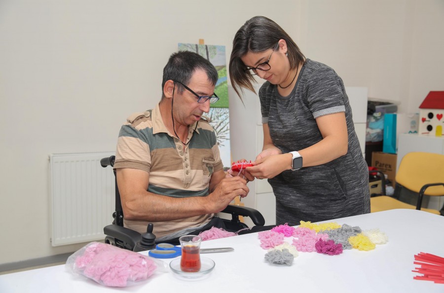 Barış Mahallesi'ne taşınan Bizim Ev merkezinde fiziksel, zihinsel, görme ve süreğen engel gruplarına yönelik birçok alanda eğitim ve aktivite yapıldığına değinen Bizim Ev Sorumlusu Fatih Adın, 'Fiziksel, zihinsel, görme engelliler ve süreğen engellilerle birlikte yeni dönemde çalışmalarımıza, yeni yerimizde devam ediyoruz. Çeşitli engel gruplarına yönelik düzenlenen atölye çalışmalarıyla öğrenmeyi, eğlenceli hale getiriyoruz. Katılımcıların burada yaptığı el emeği çalışmalar, yıl sonunda açılan sergide izlenime sunuluyor. Merkezimizde bulunan yüzme havuzu da yakın zamanda faaliyete başlayacak" ifadelerini kullandı.