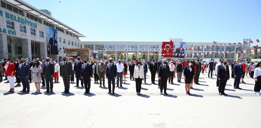 Pandemi kurallarına uygun düzenlenen törende çelenk sunumunun ardından saygı duruşunda bulunuldu ve İstiklal Marşı okundu. Törende konuşan Nilüfer Belediye Başkanı Turgay Erdem, son 2 yıldır bayramları bayram tadında kutlayamamanın hüznünü yaşadıklarını belirtti. Atatürk'ün en büyük eserini emanet ettiği gençlerle ve coşkulu bir kalabalıkla bayram coşkusunu doyasıya yaşamak istediklerini ifade eden Başkan Erdem,  şöyle konuştu: "19 Mayıs, aslında bizim hikâyemizin başladığı gündür. Türkiye Cumhuriyeti'nin kuruluşuna giden yolda atılan ilk adımdır. Ulu Önder Mustafa Kemal Atatürk'ün, 19 Mayıs'ta Samsun'a ayak basışı Türk kurtuluş mücadelesinin de başlangıcıdır. Dolayısıyla Cumhuriyet tarihinin en önemli dönüm noktalarından biridir. Emperyalist devletlerin Anadolu'yu işgallerine karşılık olarak Türk Kurtuluş Savaşı'nın başladığı o günü, Atatürk Türk gençliğine armağan etmiştir. Atatürk gençliğe sonsuz güven duyuyordu.  Gençlik kavramı Atatürk için aynı zamanda yenilikçi fikirleri de ifade ediyordu.  Türkiye Cumhuriyeti'ni ileriye götürecek şeyin, yenilikçi-ilerici fikirler olduğunu düşünüyordu. Milli Mücadele ve Kurtuluş Savaşı'nın fiilen başladığı 19 Mayıs'ın gençliğe adanması çok anlamlıdır. Çünkü, gençlik cesarettir, umuttur. Ve bütün devrimler o cesaretin eseridir. Türkiye Cumhuriyeti işte o cesarete, o ruha emanet edilmiştir."