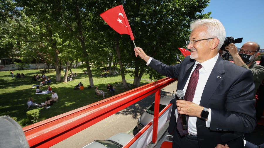 Nilüfer Belediye Başkanı Turgay Erdem de gün boyu otobüsle Nilüfer'i cadde cadde gezerek vatandaşların bayramını kutladı. Erdem zaman zaman da otobüsten inerek vatandaşların bayram kutlamalarına eşlik etti.