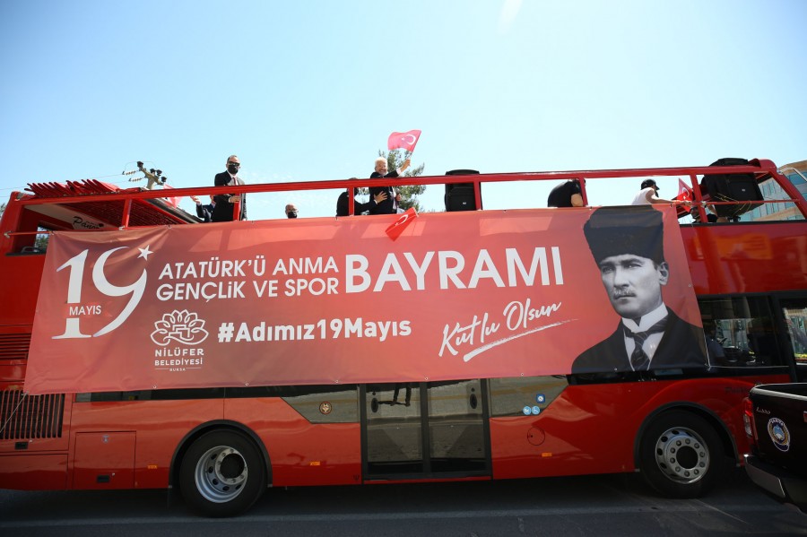 Daha sonra iki müzik grubu bayraklarla donatılmış iki ayrı otobüsle Nilüfer'i gezerek kentin caddelerinde vatandaşların 19 Mayıs Atatürk'ü Anma Gençlik ve Spor Bayramı sevincine eşlik etti.