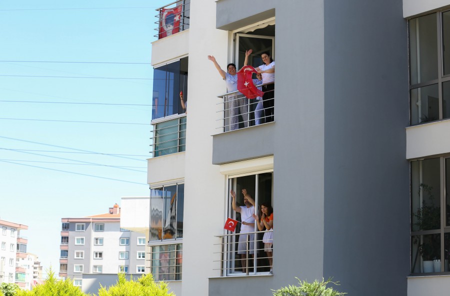 200'ü aşkın bisiklet tutkunu, 19 Mayıs Mahallesi'nden Nilüfer Cumhuriyet Meydanı'na doğru,  marşlar eşliğinde pedal çevirirken, vatandaşlar da balkonlarından,  evlerinin önünden alkışlarla ve bayraklarla coşkuya eşlik etti.