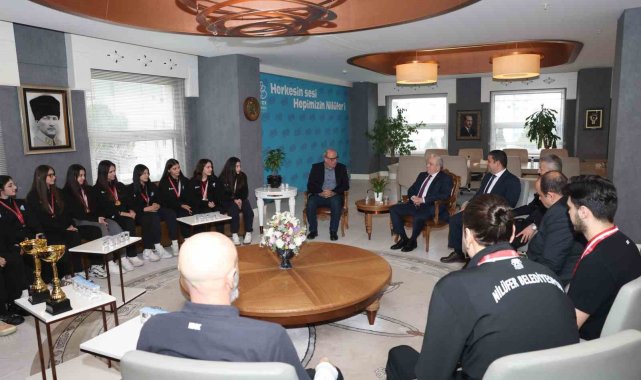Nilüfer'in şampiyon kızları kupaları Başkan Şadi Özdemir'e getirdi