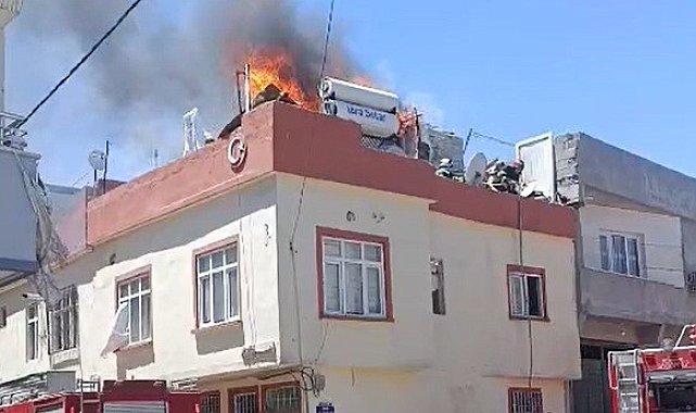 Gaziantep'in Nizip ilçesinde bir evin damında bulunan odunlukta çıkan yangın paniğe neden oldu.