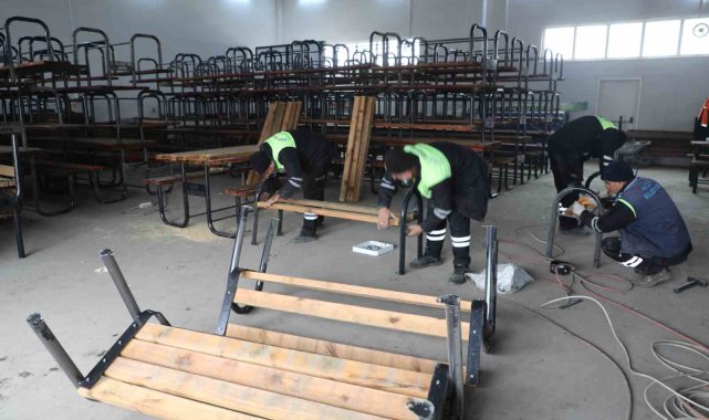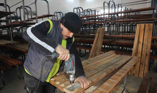 Eskiyen banklar ve oturma grupları, Nizip Belediyesi Geri Dönüşüm Atölyesi'nde yeniden hayat buluyor.