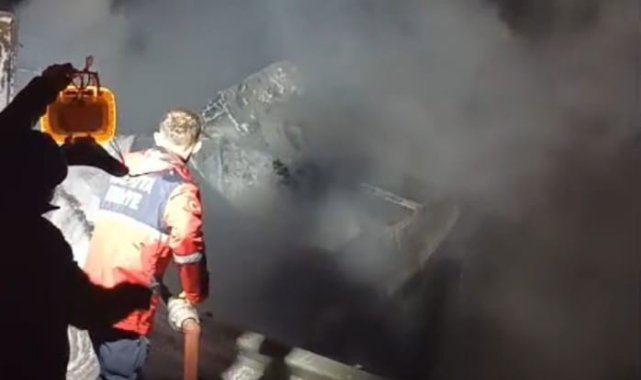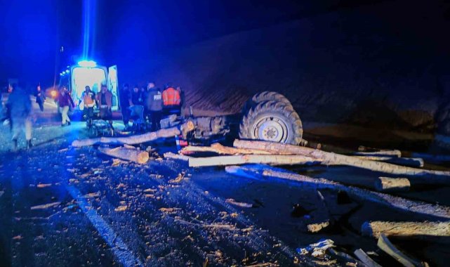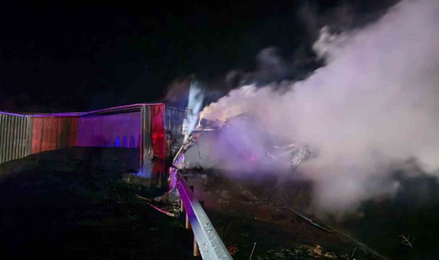 Odun yüklü traktör ile çarpışan tır alev alev yandı: 3 yaralı
