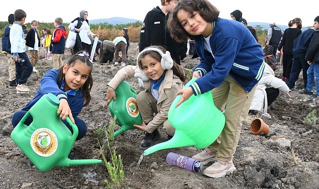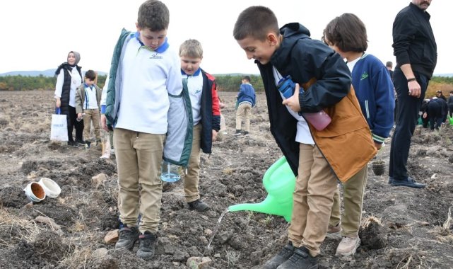 Eskişehir'de 'Yeşil Vatan-Benim Okulum Geleceğe Çare!' sloganıyla gerçekleştirilen etkinlikte fidanları toprakla buluşturan öğrenciler, geleceğe nefes oldu.