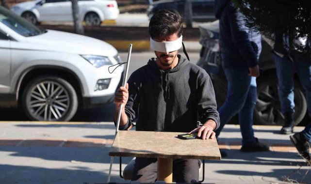 Diyarbakır'da üniversite öğrencileri 7-14 Ocak Beyaz Baston Haftası'nda gözlerini kapatıp, "sarı bant" ve "kılavuz yollar"da yürüyerek engelli bireylerle empati kurdu.