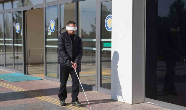 Öğrenciler gözleri kapalı yürüdü, 'sarı bant' ve 'kılavuz yollar'ın önemini anladı