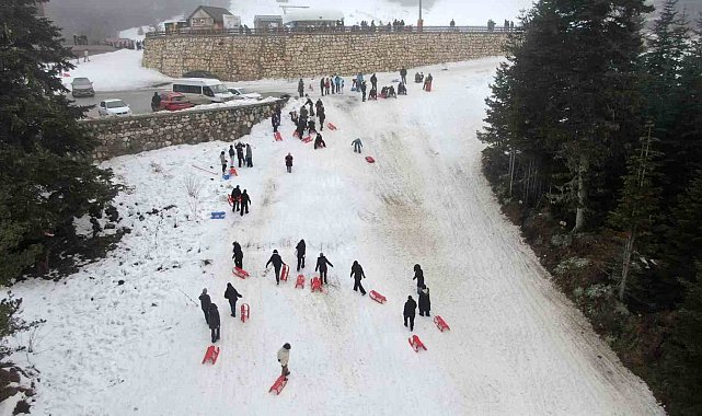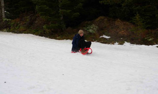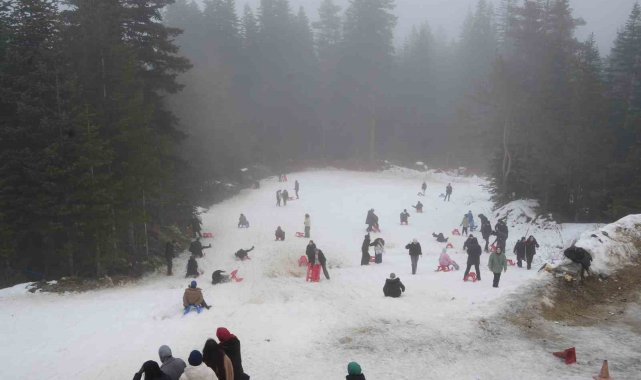 Öğrenciler okul stresini Ilgaz Dağı'nda kızakla kayarak attı