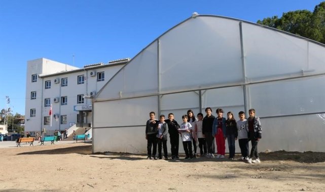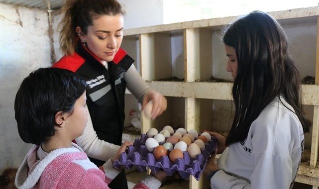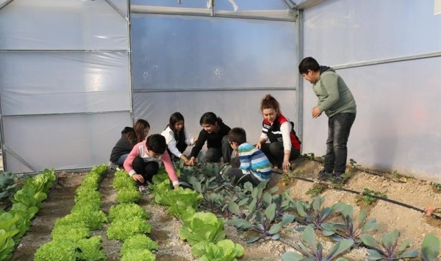 Adana'da 9 mahalledeki çocukların taşımalı eğitim gördüğü Hocallı Türk Kadınlar Birliği Ortaokulunda öğrenciler, tavuk besleyip sebze yetiştiriyor.