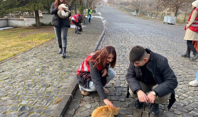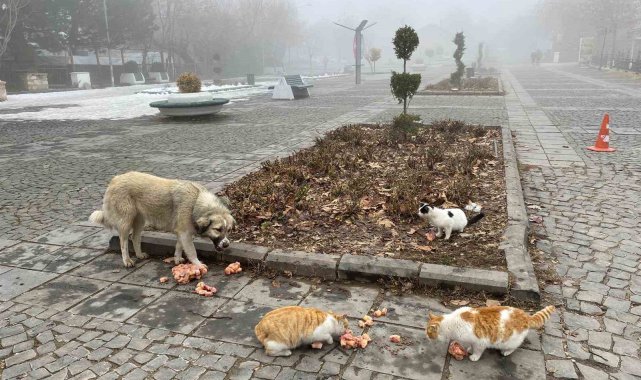 Elazığ'da belediye desteği ile Şehit Mehmet Öter Turizm Mesleki ve Teknik Anadolu Lisesi öğrencileri, öğretmenleri ile birlikte sokak hayvanlarına mama ve su desteği sağladı.