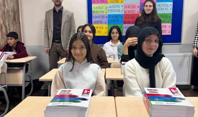 Körfez'de bilgi evlerinde eğitim gören tüm 8. sınıf öğrencilerine Liselere Geçiş Sınavı hazırlık kitapçığı hediye edildi.