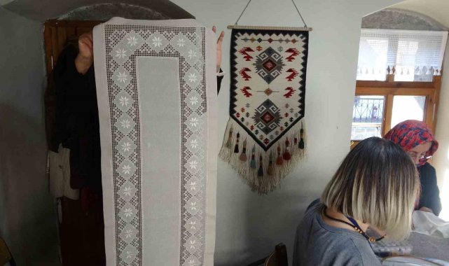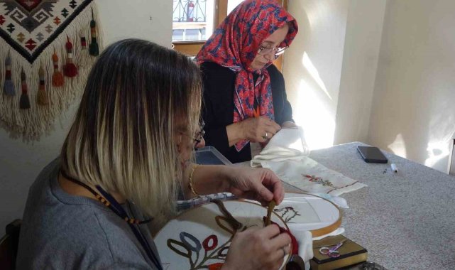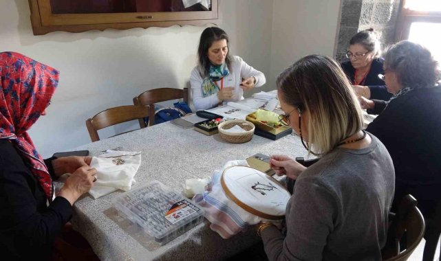 Trabzon'da Ortahisar Halk Eğitim Merkezi bünyesinde bulunan Alacahan'da açılan kursta, el nakışları öğretmeni olarak görev yapan Eda Turan'ın öğrencileri arasında annesi ve ablasının bulunması dikkat çekiyor.