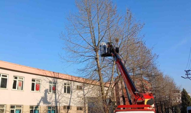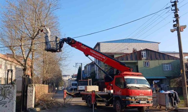 Dilovası'nda park ve bahçeler müdürlüğü ekipleri, öğrencilerin güvenliği için okullardaki ağaçları bakım altına alarak buduyor.