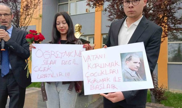 Şanlıurfa ve Kahramanmaraş'ta yaşanan üzücü olayların ardından, Şehit Erol Olçok Turizm Mesleki ve Teknik Anadolu Lisesi'nden bir gurup öğrenci, arkadaşlarını ve öğretmenlerini çiçeklerle karşıladı.Bursa Osmangazi Şehit Erol Olçok Turizm Mesleki ve Teknik Anadolu Lisesi öğrencileri Şanlıurfa ve Kahramanmaraş'ta yaşanan okul baskınlarından sonra farkındalık oluşturmak adına anlamlı bir etkinliğe imza attı. Sabah okula gelen öğretmenlerini çiçeklerle ve pankartlarla karşıladı.Öğrenciler, 'öğretmene silah değil, çiçek uzatılır' ve 'Vatanı korumak çocukları korumaktan başlar' pankartlarıyla arkadaşlarını karışlayan öğrenciler, ayrıca tüm öğretmen ve öğrencilere karanfil dağıttı. Öğrencilerinin bu duyarlılığının kendilerini çok duygulandırdığını ifade eden Şehit Erol Olçok Turizm Mesleki ve Teknik Anadolu Lisesi Müdür Yardımcısı Mehmet Niyazi Köse, "Eğitimci olarak bizler on iki günde meslek hayatlarının en zor dönemini yaşadık. Bu süreç öğrencilerimiz için çok daha zordu. Ancak onlar kendi zorluklarını unutarak arkadaşlarına ve bizlere büyük bir sürpriz yaptı. Kendileri küçük de olsa kalplerinin ne kadar büyük olduğunu bize gösterdiler. Bizim tahayyül ettiğimiz Türk Gençliği işte tam olarak budur. Öğrencilerimiz kutluyor ve onların öğretmenleri olmaktan gurur duyuyoruz" dedi.