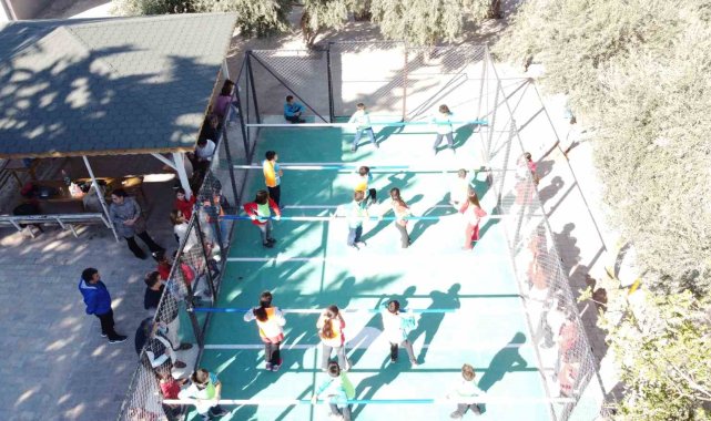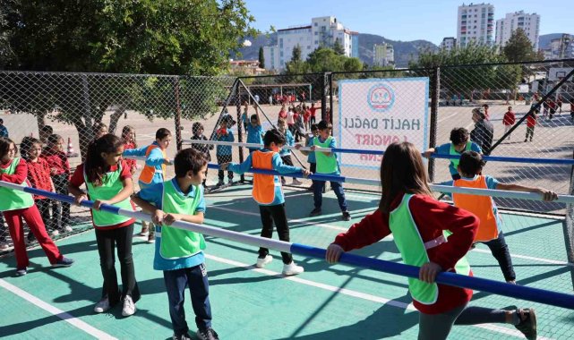Okul bahçesinde canlı langırt, renkli görüntüler oluşturdu
