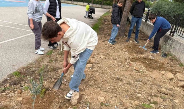 Okul bahçesine 60 zeytin fidanı dikildi