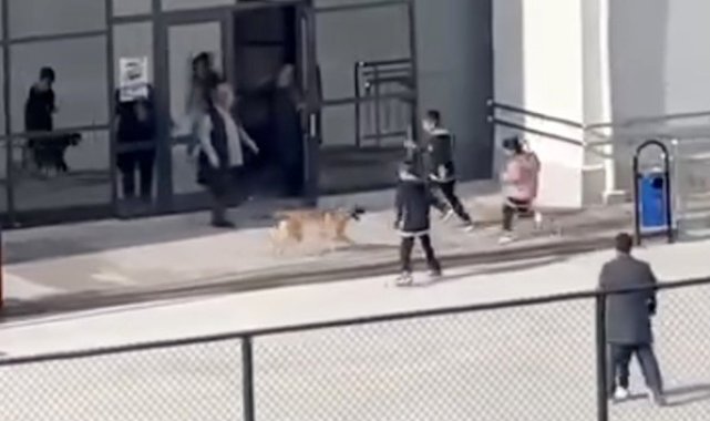 Okul bahçesine giren köpek çocuklara büyük panik yaşattı: O anlar kameraya yansıdı