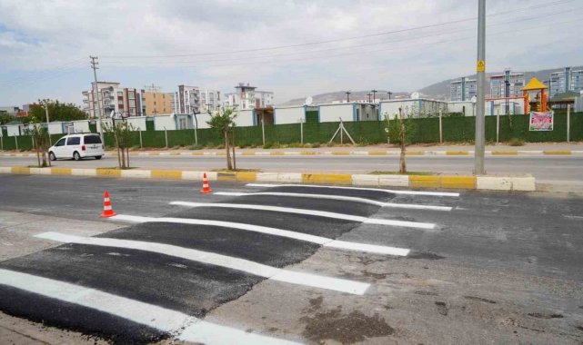 Adıyaman Belediyesi Fen İşleri ekipleri, kent genelinde trafik güvenliğini artırmak amacıyla okul önlerinde hız kesici kasis ve şerit çalışmaları gerçekleştirdi.