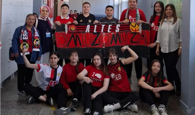 Okula Eskişehirsor formasıyla gelip teneffüslerde yaptıkları tezahüratlarla takımlarının başarısını kutladılar