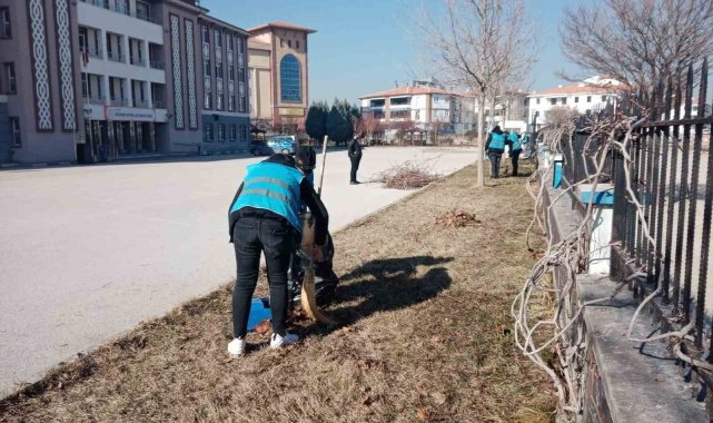 Çorum'da denetimli serbestlik yükümlüleri tarafından okulların bahçelerinde temizlik ve bitki bakım çalışması yapıldı.