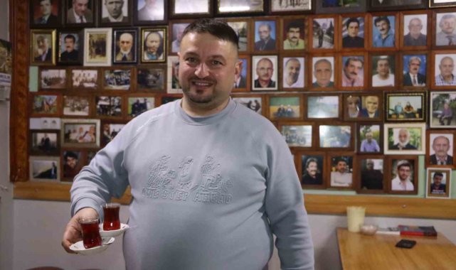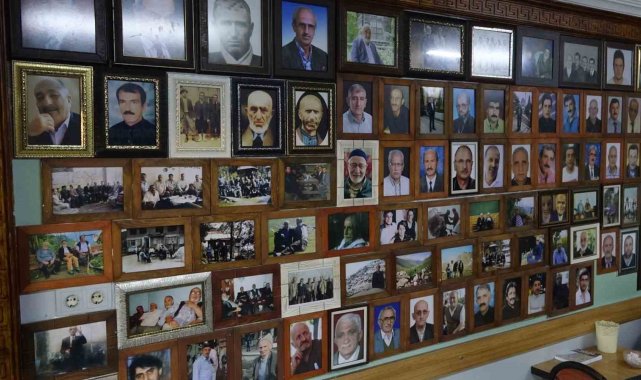 Rize'deki çay ocağına gelenler duvarda vefat eden akrabalarının ve dostlarının fotoğraflarına bakarak hasret gidiyor.