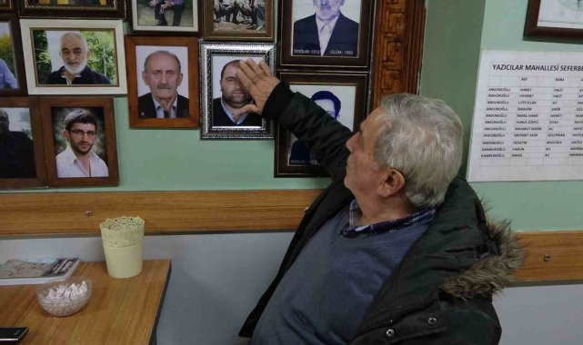 Rize'deki çay ocağına gelenler duvarda vefat eden akrabalarının ve dostlarının fotoğraflarına bakarak hasret gidiyor.Çayeli ilçe merkezinde hizmet veren bir çay ocağında mahalleri Yazıcılar mahallesi ve çevre mahallede hayatını kaybedenlerin fotoğrafları uzun süredir duvarlara asılıyor. Asılı fotoğraflarda dostları, yakanları ve akrabaları olanlar, onlara bakarak çay içiyor ve hasret gideriyor. 6 ay önce oğlunu kaybeden Dursun Yazıcı da oğlunun fotoğrafının asılı olduğu duvarın altında ki masaya gelerek her gün oğlunu seviyor, okşuyor ve oğluyla dertleşiyor. 'Benim ballı oğlum' diyerek oğlunun fotoğrafını seven Dursun Yazıcı'nın o duvarda oğlu dışında bir çok da akrabası yer alıyor.Her gün çay ocağına gelerek oğlunun fotoğrafı ile hasret giderdiğini dile getiren Dursun Yazıcı "Yazıcılar mahallesinden bütün akrabalarım amcamın oğlu, dayımın oğlu bütün yazıcılar mahallesinin ölenlerinin tablosudur bu köşe. Bu köşede daha yaşlılarımız ondan da daha yaşlılarımız dedelerimiz yani ölen kişilerin resmini bulabildiklerimizin hepsinin fotoğrafı burada var. Burada iki tane abim var. Babam var. En son evladım burada; 6 ay oldu evladımı kaybedeli, onun da fotoğrafını buraya astık. Burada çay içerim ve onunla hasret gideririm" dedi."Evladım burada çay içerdi. Hiç demezdi ki benim de fotoğrafım buraya asılacak"Oğlunun bir gün kendi fotoğrafının da bu duvarda olacağını bilmeden gelip çay ocağında çay içtiğini de sözlerine ekleyen acılı baba "Burada böyle beni evladım bıraktı gitti; 41 yaşındaydı evladım, böyle bir acıyı Allah kimsenin başına vermesin. Evlat acısını çekmeyen bilemez bu acıyı bilemez. Böyle buda bizim başımıza geldi. Evladım gelir burada otururdu, çay içerdi, yemek yerdi. Hiç demezdi ki 'Benim de fotoğrafım buraya asılacak', bizde demezdik. Kimin aklına gelirdi ki ama evladımın da resmini buraya astık işte" ifadelerini kullandı."Onları unutmama adına duvarda onları da aramızda hissediyoruz"Mahallesinde ölen büyükleri ve yakınlarını yad etmek için çay ocağında böyle bir köşe kurulduğunu ifade eden Yazıcılar Mahallesi Muhtarı Barış Yazıcı ise "Mahallemizde, komşu mahallelerde, bu çay salonunda, burada bu masalarda bizimle beraber çay içip, sohbet edip, beraber dertlerimize ortak çözüm aradığımız, dedelerimiz, amcalarımız, ağabeylerimiz aramızdan ebedi âleme göç ettiler. Fakat burada onları unutmama adına böyle güzel bir duvarda onları da aramızda hissediyoruz" dedi."Onları tekrardan görmek ve hatıralarını yaşatmak için yaptık"İşletmeci Gökhan Yazıcı ise fotoğraf asma uygulamasına 3 yıl önce başladıklarını, tanıdıklarından büyüklerinin fotoğraflarını istediklerini ve bu şekilde duvarı doldurduklarını dile getirerek "Köyümüzde eskiden ölmüş insanlar ve yeni vefat edenler var. Onları tekrardan görmek ve hatıralarını yaşatmak için yaptık. Çok gelen oldu başka yerlerden görmeye. Resimleri görüp tanıyanlar şaşırarak bu öldü mü diye çok soran oldu. Orada birinin resmi var mesela tanıyan bir arkadaşı burada yaşamıyordu, öldüğünü tablodaki resmini görünce öğrendi. Bu öldü mü, ne zaman öldü diye sordu. Zaten resimlerin tek olanları hepsi ölen kalabalık olanlar bazıları ölen bazıları yaşayan. Biz bu resimlere bir iki kişiyle başladık. 3 senede yavaş yavaş kimisinden dedesinin resmini kimisinden babasının resmini isteyerek rahmetli Kadir hocamızın oğluyla beraber ve fotoğrafçı Halil Hoca ile birlikte güzel bir pano yapalım dedik ve elimizden geldiği kadar yaptık. Alt tarafta yan köy komşularımız ve bu çay ocağına gelen dostlarımız var" ifadelerini kullandı.