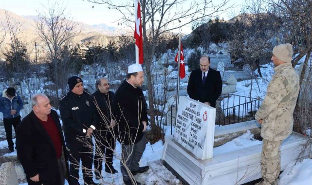 Oltu Kaymakamı Mustafa Çelik ve beraberindeki heyet, şehitlerin ölüm yıldönümünde mezarlık ziyareti gerçekleştirdi.