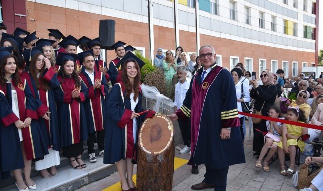 Ondokuz Mayıs Üniversitesi (OMÜ) Diş Hekimliği Fakültesi'nden 2024-2025 akademik yılında 127 öğrenci mezun oldu.OMÜ Diş Hekimliği Fakültesi bahçesinde mezuniyet töreni düzenlendi. Mezun olan öğrencilere yeni hayatlarında başarılar dileyen Rektör Yardımcısı Prof. Dr. Ayşe Pınar Sumer, "OMÜ ailesi olarak sizlere yalnızca mesleki donanım değil, aynı zamanda etik değerlere ve toplumsal sorumluluğa dayalı bir bakış açısı kazandırmayı amaçladık. Bilimin ışığında, insan onuruna saygılı, çözüm üreten ve duyarlı bireyler olarak ülkemize ve insanlığa katkı sunacağınıza yürekten inanıyorum. Mezuniyetinizin sizlere sağlık, başarı ve huzur getirmesini diliyor; yolunuzun açık, vicdanınızın rehberiniz olmasını temenni ediyorum" ifadelerini kullandı.Törende öğrencilere hitap eden Diş Hekimliği Fakültesi Dekanı Prof. Dr. Kaan Gündüz, şunları söyledi:"Sevgili öğrencilerimiz, uzun ve zorlu bir yolculuğu başarıyla tamamladınız. Bugün artık yalnızca birer mezun değil, aynı zamanda mesleğini icra etmeye hazır birer diş hekimisiniz. Bilimin ışığında, insan sağlığını önceleyen bir meslek ahlakıyla yola devam edeceğinize yürekten inanıyorum. Diş hekimliği, sadece teknik bir beceri değil; aynı zamanda bir sabır, empati ve güven mesleğidir. Sizlerin her birinin bu değerleri en iyi şekilde taşıyacağına gönülden inanıyoruz. Sizleri bugünlere getiren kıymetli ailelerinize, emeği geçen tüm hocalarımıza ve destek olan herkese teşekkür ediyorum. Yolunuz açık, vicdanınız rehberiniz olsun."Yeni mezunların yanlarında olacaklarını belirten Samsun Diş Hekimleri Odası Başkanı Dt. Övgü Tunçdemir Eyüboğlu, "Mesleğe adım attığınız ilk günlerde sizin soru ve sorunlarınıza elimizden geldiğince çözümler üretmeye çalışacağız. Sizlerin de gösterdiği özenle mesleğimiz çok daha iyi yerlere gelmeyi hak etmektedir. Samsun Diş Hekimleri Odası olarak mesleki ve sosyal yönden her zaman sizlere destek olmaya hazırız" dedi.Öğrenci arkadaşlarına seslenen fakülte birincisi Damla Buse Çavuşoğlu ise "Bu binaya girdiğimde aklımda yalnızca tek bir soru vardı: Başarabilecek miyim? İnsanların hayatına dokunmak, acılarını hafifletmek ve belki de yüzlerine daha içten bir gülümseme kondurabilmek istiyordum. Yorulduğum her anda bu hayali hatırladım. Bu yüzden her gün daha çok öğrenmeye, daha iyi uygulamaya çalıştım. Tüm arkadaşlarımı emekleri için tebrik ediyor ve meslek hayatlarının gönüllerince olmasını temenni ediyorum. Bugün burada aldığımız eğitimi, Türk milletinin geleceği için en iyi şekilde kullanacağımıza olan inancımı yürekten taşıyor, hepimize başarılar diliyorum" diye konuştu.Dönem birincisi Damla Buse Çavuşoğlu, Fakülte Dekanı Prof. Dr. Kaan Gündüz ile dönem kütüğüne birincilik plaketini çaktı. Ardından Diş Hekimliği Fakültesi'nden başarıyla mezun olan öğrencilere hediye ve başarı belgeleri verildi. Mezuniyet töreni, öğrencilerin keplerini havaya atmasıyla son buldu.